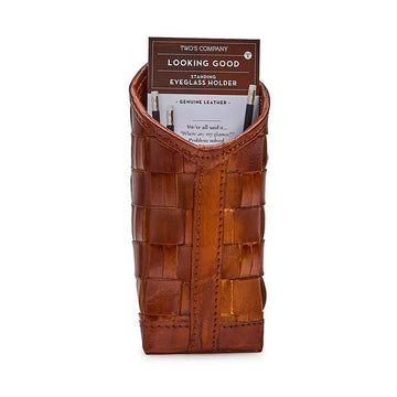 Chestnut Plain Woven Leather Eyeglass Case